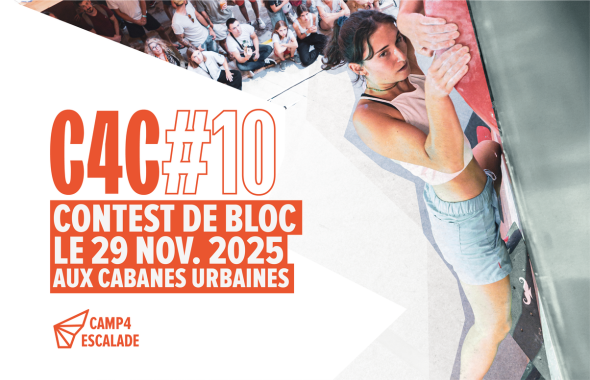 Oyé oyé grimpistes amateurs ou forcenés, le C4C revient pour sa dixième édition ! Déjà dix épisodes du contest emblématique au Camp4… de grimpe acharnée, de finales endiablées, de prises broyées. Pour ce prochain rendez-vous, le 29 novembre, double ration de gâteau, puisqu’on soufflera aussi la 13ᵉ bougie des Cabanes Urbaines. Bref, autant vous dire que ça va être la bamboche.