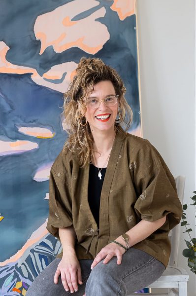 Sa pratique artistique questionne la couleur, la mise en espace et le végétal avec une écriture colorée singulière. Diplômée des Arts Appliqués Duperré, spécialisée dans le dessin textile, Sokina Guillemot a commencé par voyager très loin, avant de s’installer en France définitivement.