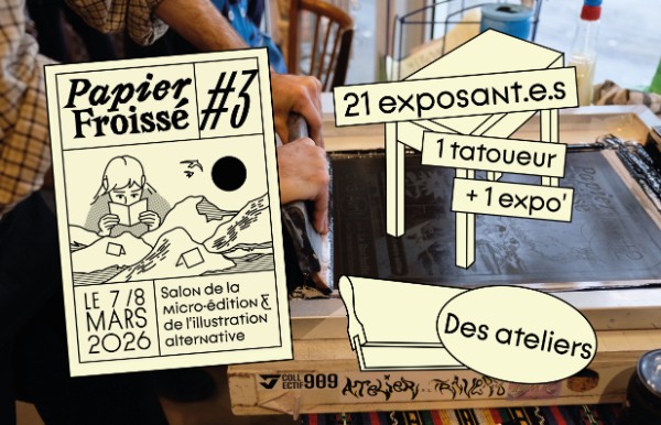 Des papiers froissés, pliés, découpés, imprimés, déchirés, bref… Les 7 et 8 mars, on célèbre la microédition et l’illustration alternative à l’occasion du salon « Papier Froissé », pour sa troisième édition ! Pendant tout un week-end, c’est tout une myriade de créateur·ices, collectifs et artistes qui viennent représenter la scène locale de la création indépendante. Fanzines, illustrations, impressions… de quoi en prendre plein les mirettes !