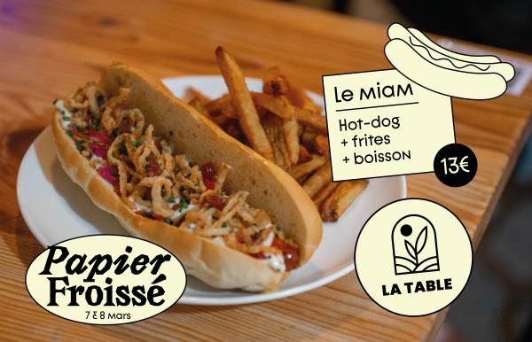 La fameuse formule à 13€ de La Table est de retour : Hot-dog + frites + boisson (d’une valeur de 3,50 €).